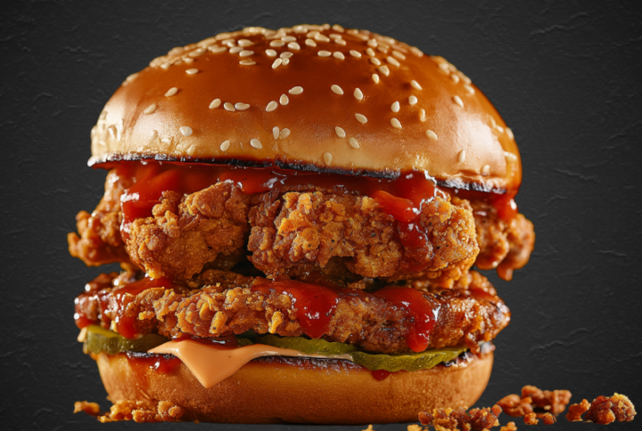 Our Chicken Fiery Fillet Burger is perfect for spice lovers. It features a tender, crispy chicken fillet coated in a fiery, flavour-packed seasoning, served in a soft bun with fresh lettuce and a creamy sauce to balance the heat.