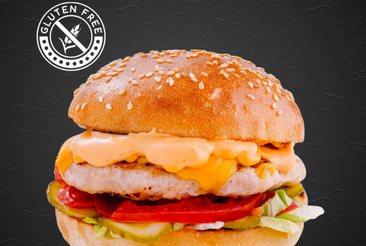 A spicy, gluten-free option featuring a crispy chicken fillet with fiery seasoning, fresh lettuce, and your choice of sauce in a gluten-free bun.