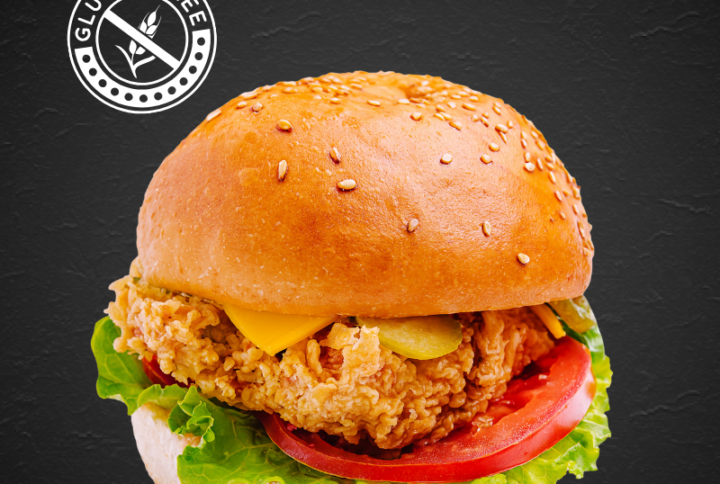 Two juicy beef patties stacked with melted cheese, served in a gluten-free bun with fresh lettuce, tomato, and your choice of sauce. A hearty and delicious gluten-free option!